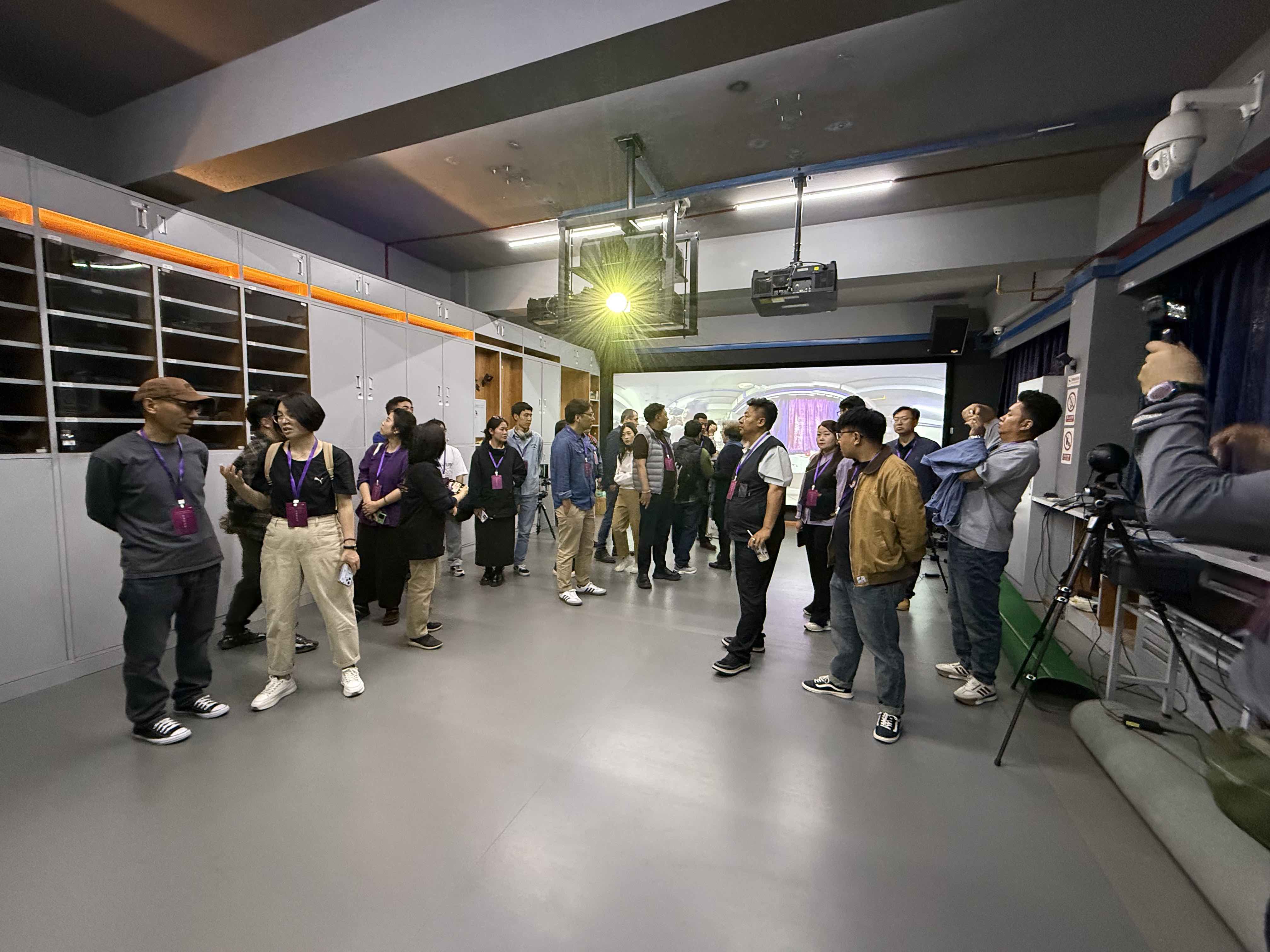 “格萨(斯)尔”史诗口传非遗保护与传承创新工作坊访问实验中心,中心教室代表为工作坊学员介绍了实验中心下属实验室、新文科实验教学场景及仪器设备。