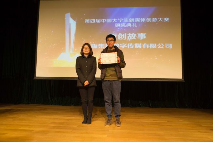 阳春三月,春暖花开。2017年3月16日,第四届中国大学生新媒体创意大赛颁奖典礼在中国人民大学大礼堂盛大开幕。典礼现场颁发了“原创故事类”“童年·家园·故事”“数字生活、味道、家乡”“数据新闻可视化互动呈现”四大主题的各类奖项,我校文学院艺术设计系毕业研究生顾剑峰同学的作品《夜间猎人1》斩获原创故事类一等奖、最佳原创奖和最具商业价值奖,涂俊老师获优秀指导教师奖。届时,现场还举行了第五届中国大学生新媒体创意大赛启动仪式。