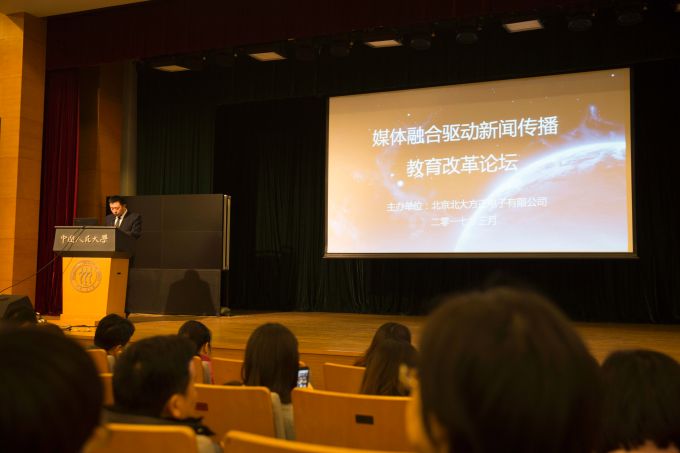当日下午,第二届“媒体融合驱动新闻传播教育改革论坛”在中国人民大学八百人大礼堂召开,来自光明日报社、中国人民大学、中国政法大学、北京大学计算机科学技术研究所、方正电子的多位重量级专家,围绕融合媒体新闻教育与人才培养、融合媒体的现状及未来、媒体大数据技术与应用等话题进行了深度探讨。我院师生代表数人参加了论坛,受益匪浅。