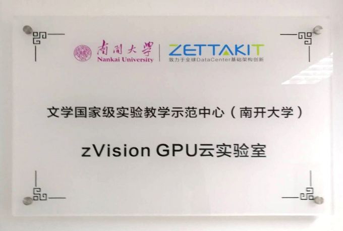 2018年3月12日,文学国家级实验教学示范中心(南开大学)与ZETTAKIT(泽塔云)联合成立的zVision GPU云实验室正式挂牌,联合实验室的设立旨在引入ZETTAKIT先进的GPU云技术打造创新性的实验平台,探索引领实验教学改革方向。