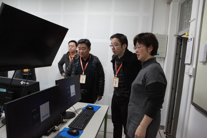 在中心主任涂俊教授和实验室所有教师的陪同下,检查下组详细地检查了中心所有实验室,排查安全隐患,提出整改建议。孙骞教授特别指出了实验室用电安全,检查小组深入课堂,在计算机表现实验室针对学生将无盖的饮品放置在接线板附近的不安全做法,孙骞教授进行了细心教导。