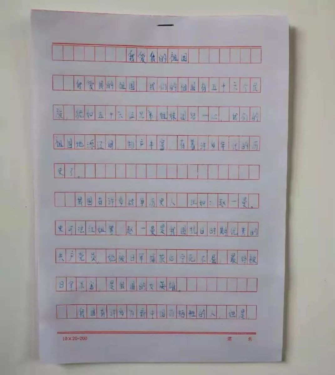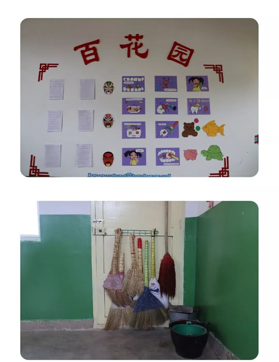 虽然只有20个学生,但6间教室布置得各有特色。五年级教室后墙上贴着彩色装饰物和学生作文。一篇题为“我爱我的祖国”的作文写道:“我们的祖国有五十六个民族,犹如五十六位兄弟姐妹团结一心。”