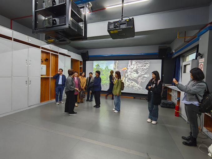 中心主任涂俊教授为来访团队介绍了文学国家级实验教学示范中心的实验教学理念与实验设施。从数字化文学创作平台到交互式文学鉴赏空间,丰富的教学资源与多元的教学手段令人眼前一亮。