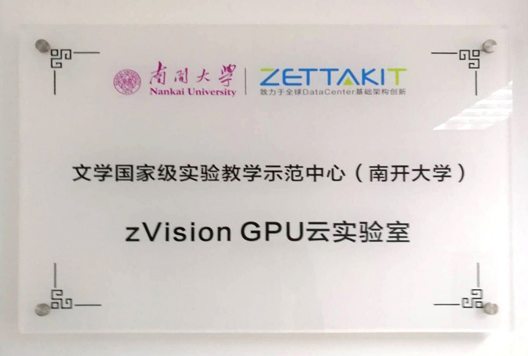 2018年3月12日,文学国家级实验教学示范中心(南开大学)与ZETTAKIT(泽塔云)联合成立的zVision GPU云实验室正式挂牌。